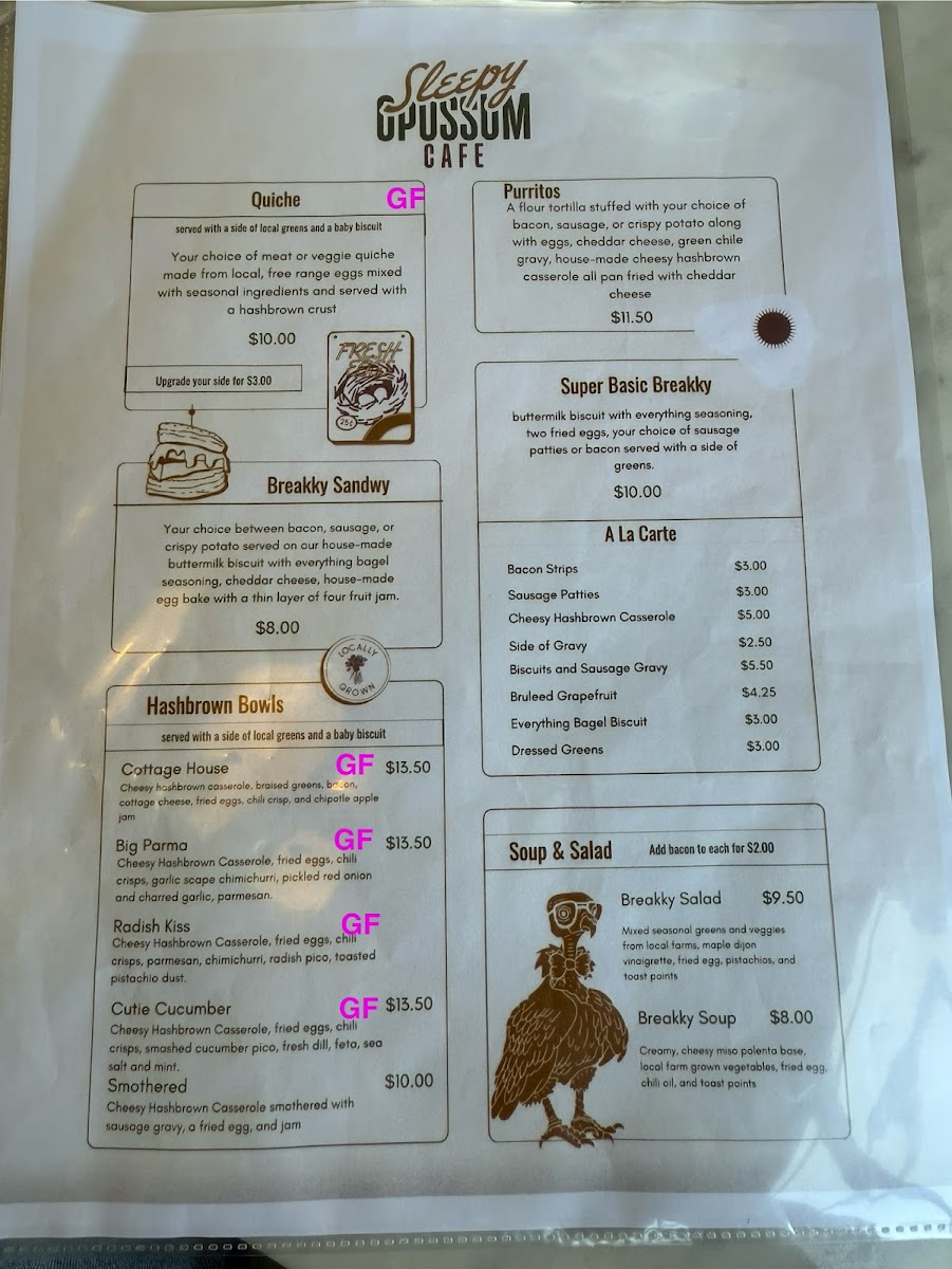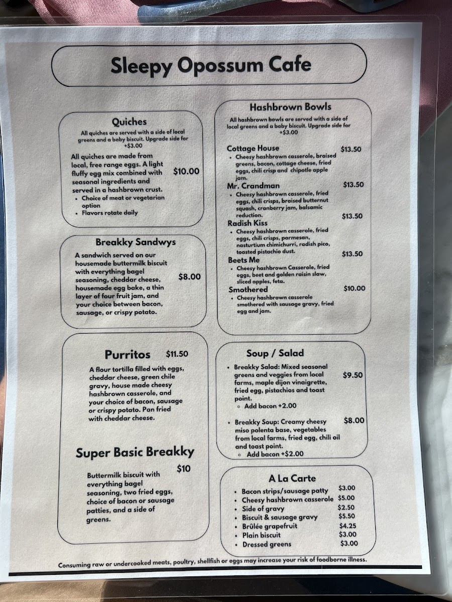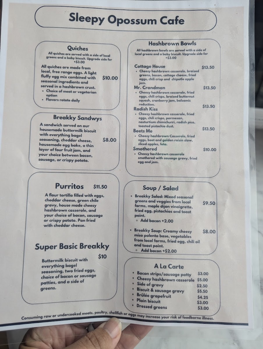 Overall, Sleepy Opossum Cafe’s menu is well-rounded, offering something for everyone-from rich and savory options to light, refreshing meals and creative drinks. Whether you're after a relaxing breakfast, a hearty lunch, or a satisfying cup of coffee, you'll find it here.